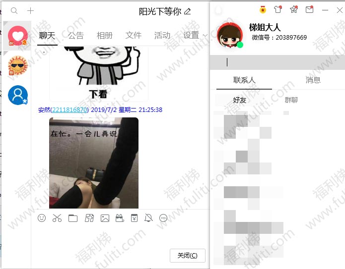 ⒌去聊天窗顶部以下相关信息悬浮提示条