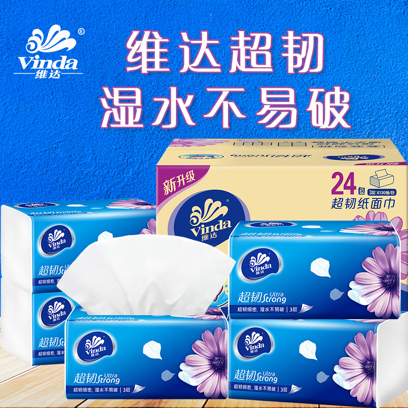 领券30元券后69.9元维达超韧纸巾130抽24包整箱