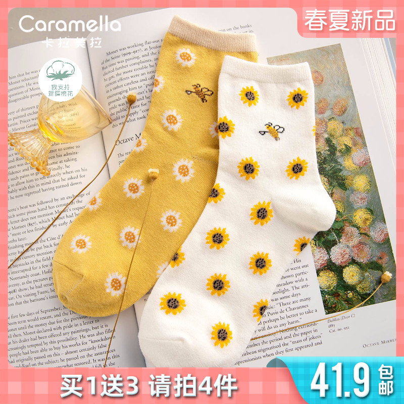 领券15元券后26.9元caramella袜子女春秋纯棉中筒袜